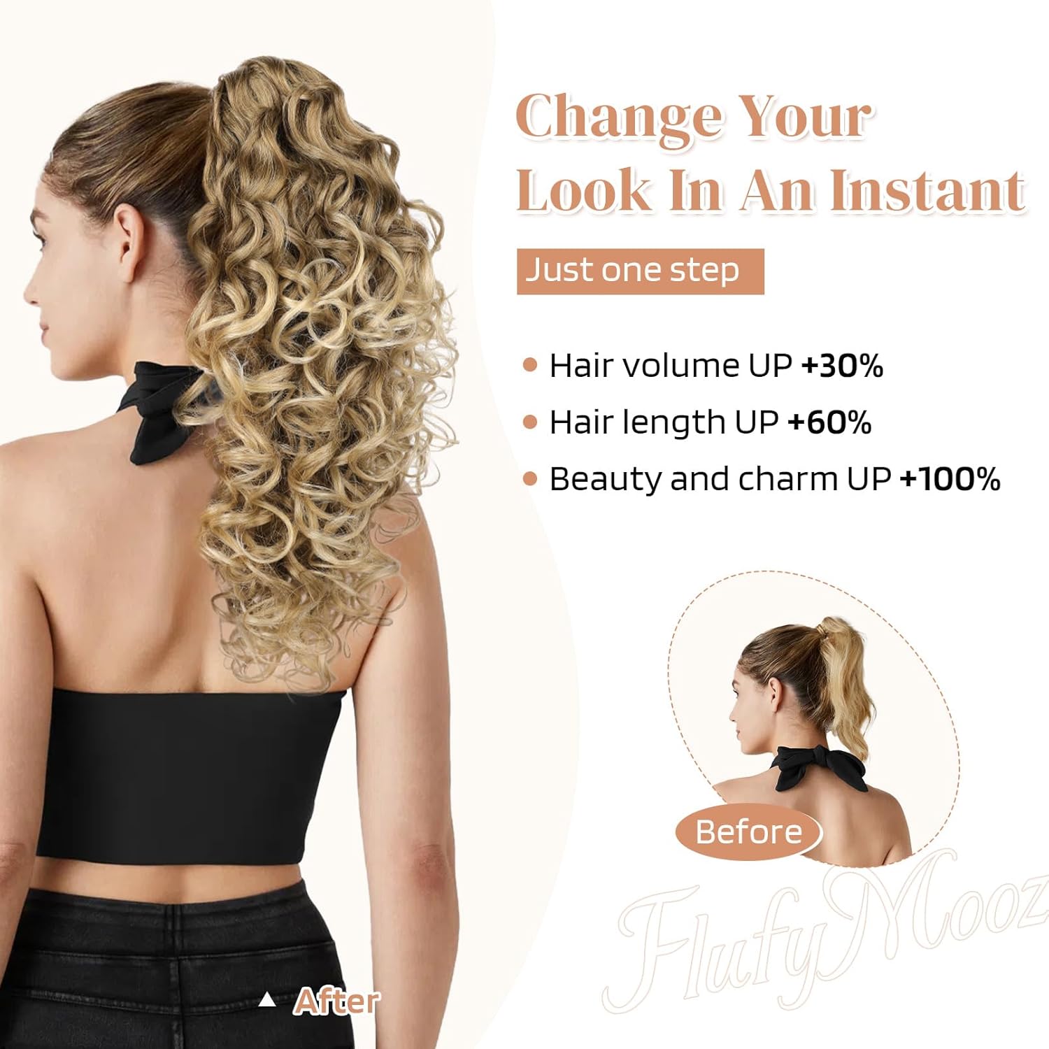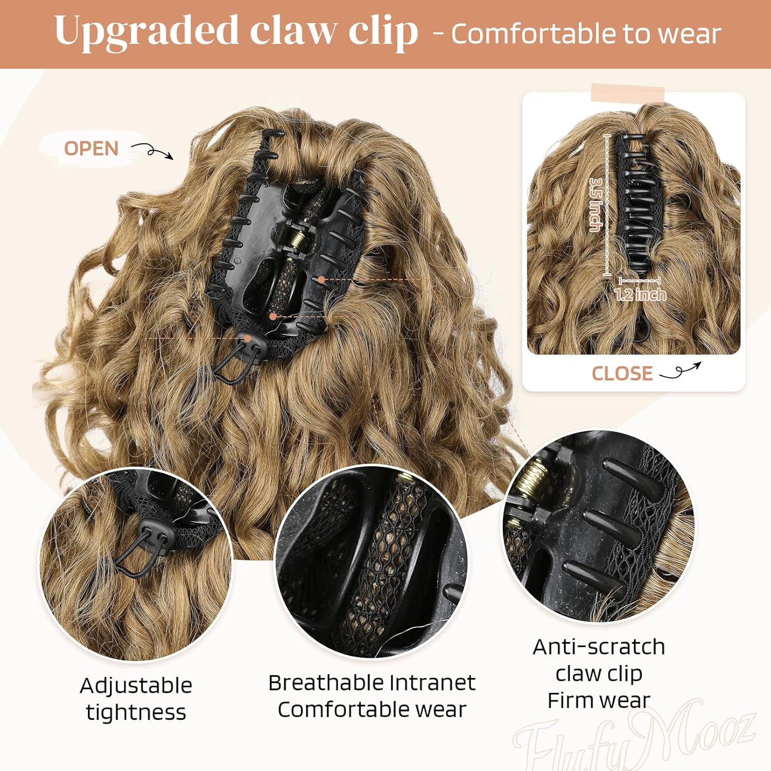 100% Pure Protein Ponytail Extension, 18 Inch Curly Claw Clip Ponytail Hair Extensions Natural Soft pony tail hairpiece for women-Dark Blonde
