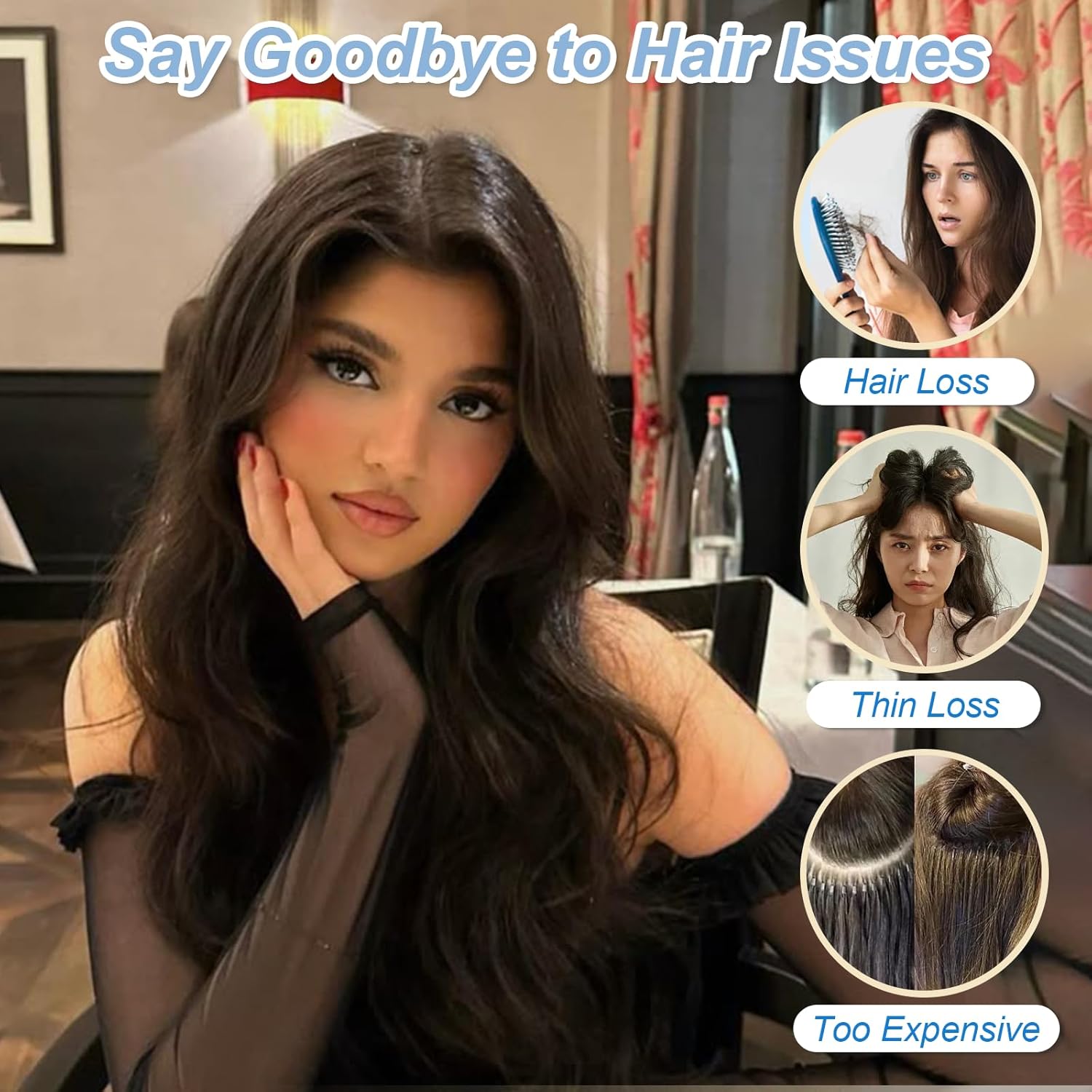 Dark Brown Invisible Wire Hair Extensions Long Wavy Synthetic Hairpiece with 4 Secure Clips for Women 20 Inch Clip in Hair Extensions