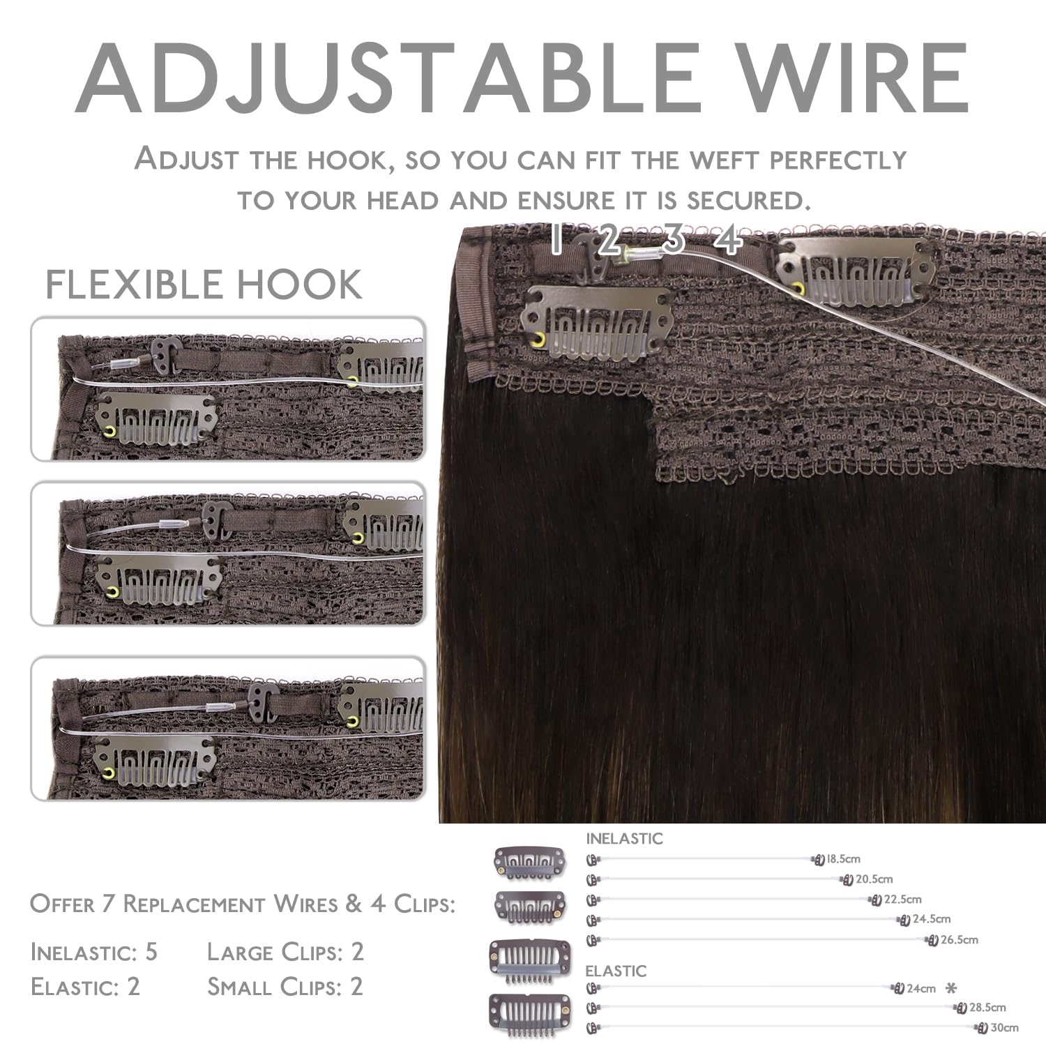 Wire Hair Extensions (Increase 50% Lifespan) Real Human Hair 14 inch 75g Balayage Dark Brown to Chestnut Remy Invisible Transparent Fish Line